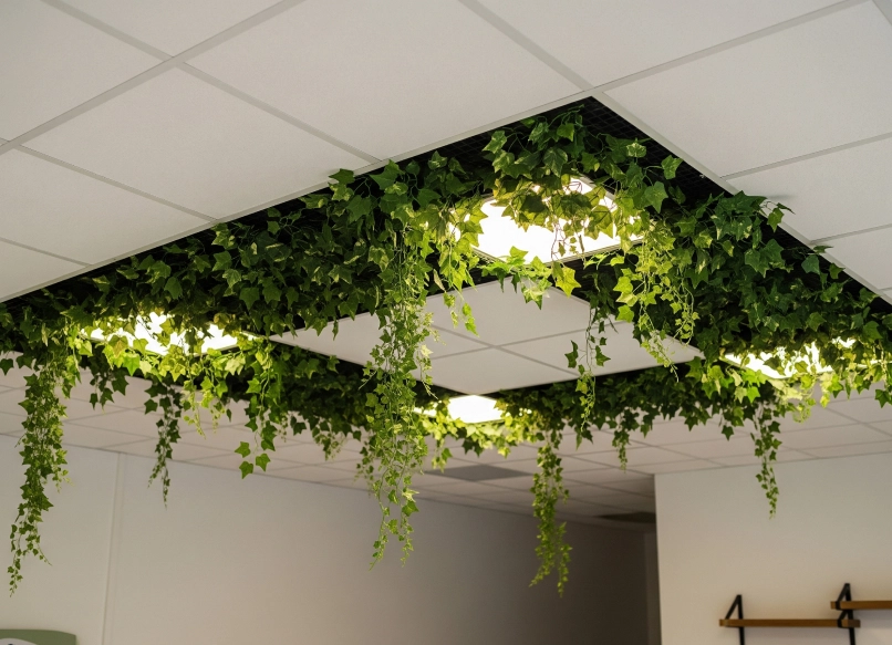 Создайте природный эффект на потолках с искусственной лозой и подвесным декором. Эстетичная и умиротворяющая атмосфера.